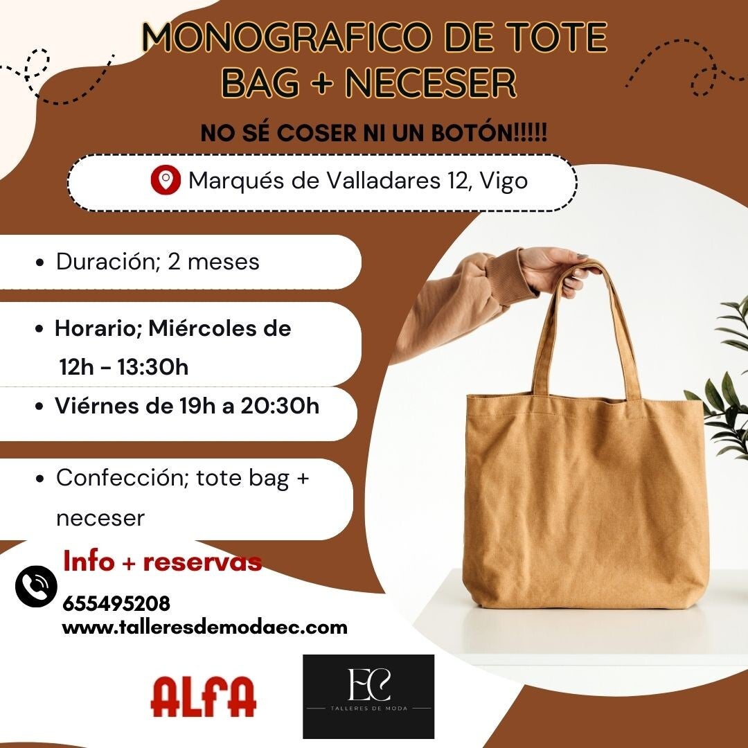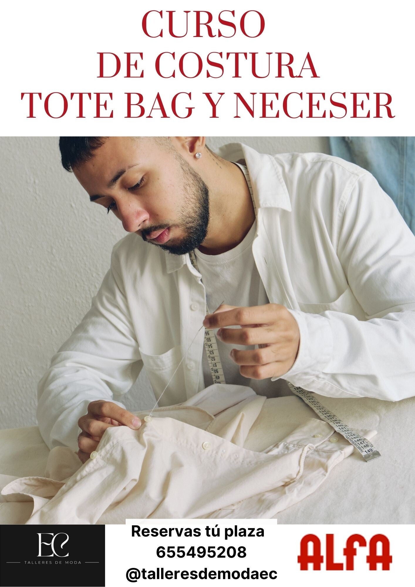 Un Curso en el que aprenderás a realizar tus primeros complementos de ropa como es este bolso TOTE Bag y neceser.